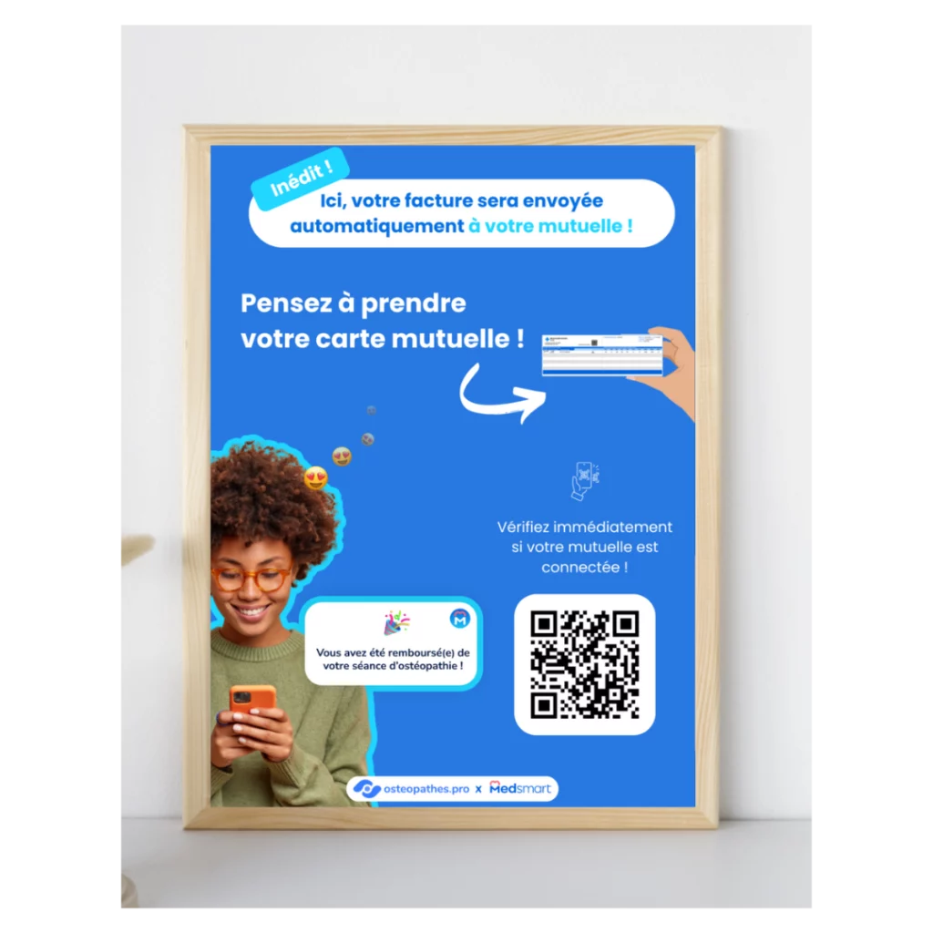 L’équipe MedSmart vous a conçu un poster que vous pouvez afficher dans votre salle d’attente. Votre patient sera ainsi informé et n’oubliera pas sa carte mutuelle la prochaine fois qu’il reviendra vous voir 😉